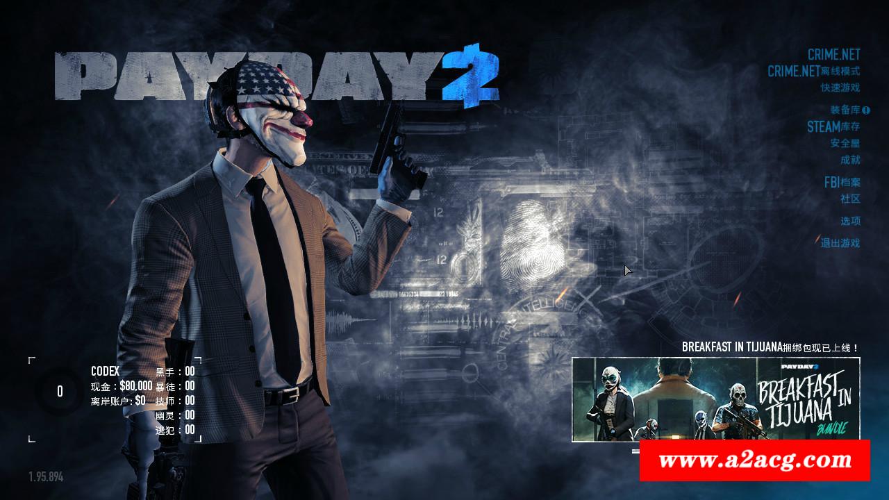 《收获日2(Payday2)》是一款由Overkill Software制作505Game发行的第一人称she击类游戏,该作是《收获日:掠夺》的续作,本作中增添了许多新功能,比如技能和升级、兵种/职业选择(每个都有特殊能力)等等。 在本游戏里,玩家扮演的是智商高超的职业罪犯,以各类犯罪手段谋求生存,例如去抢劫银行,帮助政治家完成他们的野心,为商人制作meth等待。总之,在偌大的都市里,你可以拥有强大的武器和装备,自由穿行无可阻挡。